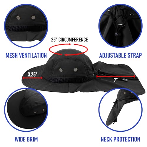 Falari Outdoor Sun Hat, Wide Brim with Neck Flap, Safari Hiking Gardening Fishing Hat