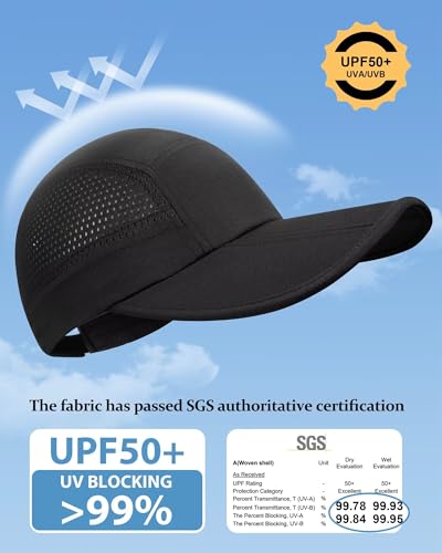 GADIEMKENSD UPF 50+ Foldable Baseball Cap, Extended Brim, Breathable Mesh, Water-Repellent, Suitable for Outdoor Use