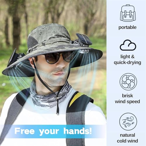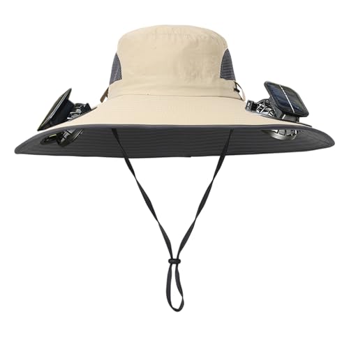 Men Women Wide Brim Sun Hats with 2 Solar Fan Waterproof Breathable Bucket Hat Outdoor Fishing Hat for Hiking Camping
