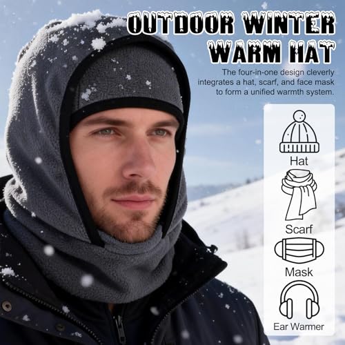 Outdoor Winter Warm Hat Neckband Integrated Cycling Mask, Winter Balaclava Ski Mask, Windproof Fleece Face Cover