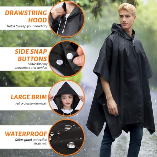 2 Pack Rain Ponchos for Adults Reusable Heavy Duty, Waterproof EVA Raincoat Cape with Drawstring Hood for Men Women