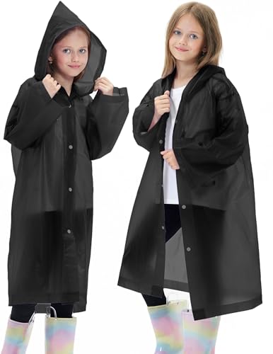 2 Pack Waterproof Raincoats for Kids Reusable,EVA Rain Ponchos Emergency Rain Jacket for Children, Boys and Girls
