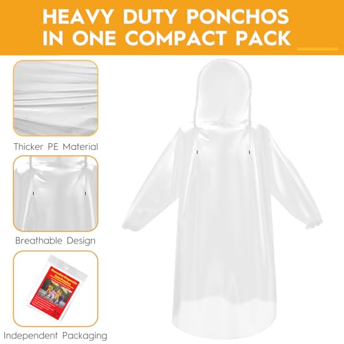 6 & 20 & 50 Pack Disposable Rain Ponchos for Adults/Youth, Waterproof PE Raincoats with Drawstring, Camping/Emergency