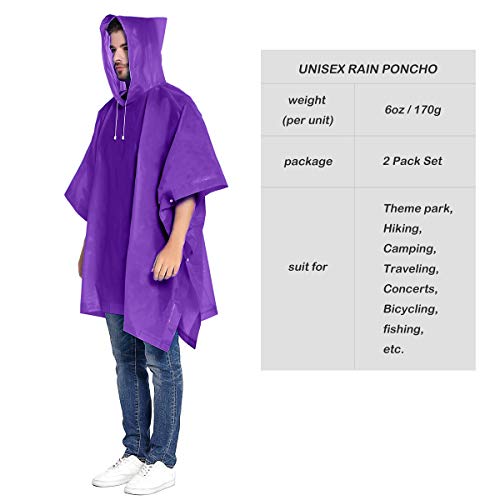 ANTVEE Reusable Rain Ponchos for Adult 2 Pack for Women and Men with Drawstring Hood