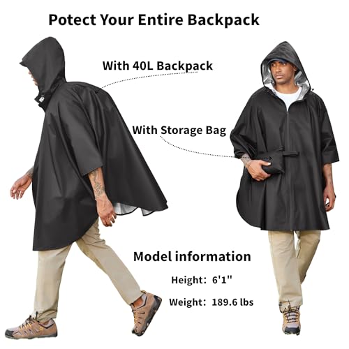 COOFANDY Rain Ponchos for Adults Full Zip Lightweight Rain Jackets Waterproof Packable Raincoats with Hood Hiking Camping