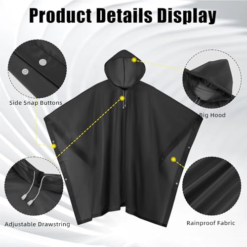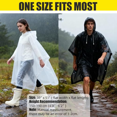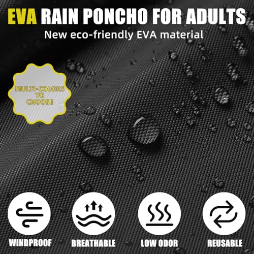Rain Ponchos for Adults Waterproof Lightweight Raincoat for Men Women Hooded Reusable EVA Rain Jacket Coats