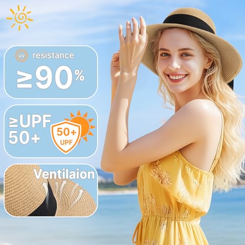 Beach Hats for Women, Sun Straw Hat for Women, UPF 50+ UV Sun Protection Sun Hat Womens, Foldable Floppy Sun Hat