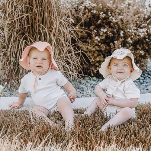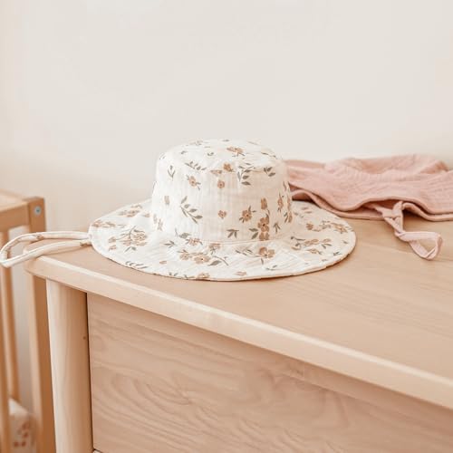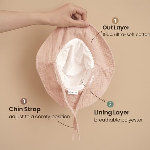Konssy 2 Pack Muslin Baby Sun Hat UPF 50+ Sun Protection Baby Bucket Hat Summer Beach Hats with Wide Brim for Boys & Girls