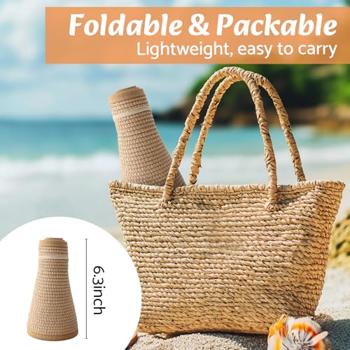NPQQUAN Sun Visor Hats for Women Wide Brim Ponytail Straw Beach Hat Packable Foldable UPF 50+ Floppy Travel Hats