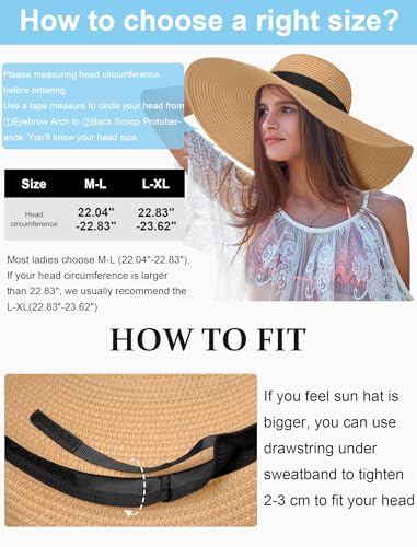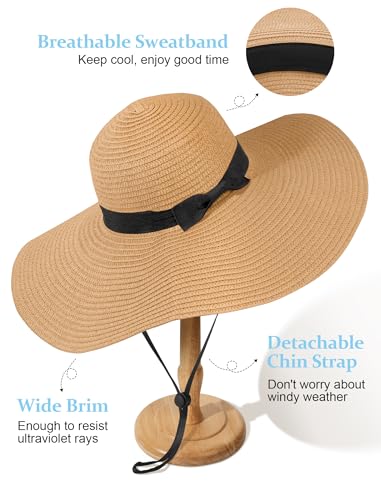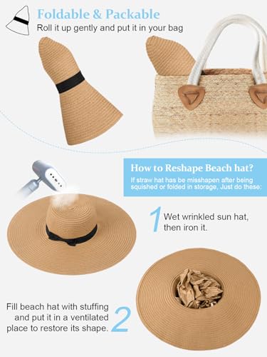 Senker Fashion Sun Hats for Women Oversize Wide Brim Straw Beach Hat Floppy Foldable Roll-Up Summer Vacation UPF 50+