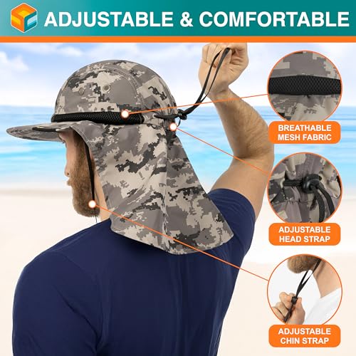 SUN CUBE Sun Hat for Men, Wide Brim Fishing Hat Neck Flap Cover Men, Women, Hiking, Camping, Sun Protection UV, Gardening