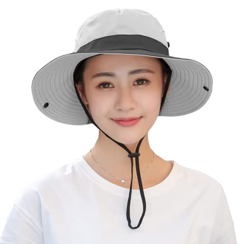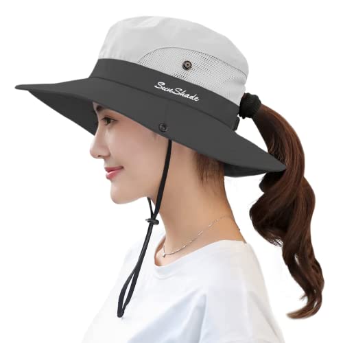 Sun Hat for Women Men with Ponytail Hole, UPF 50+ Wide Brim Bucket Hat for Fishing Hiking Gardening