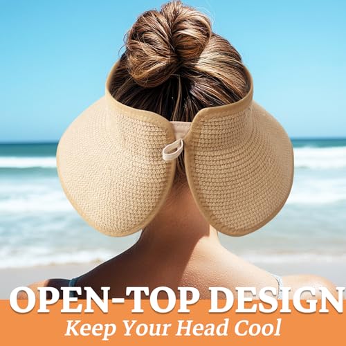 Sun Visor Hats for Women Straw Wide Brim Ponytail Beach Hat Packable Foldable UV Protection Travel Hats