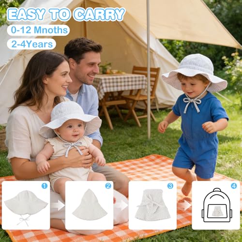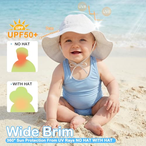 Zando UPF 50+ Baby Sun Hat for Baby Girl Boy 0-4T – Wide Brim Toddler Bucket Hat Adjustable Strap Infant Hats for Outdoor