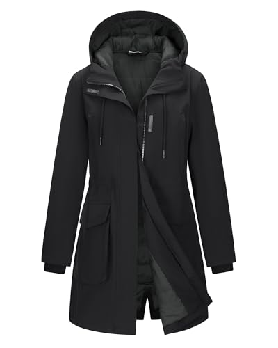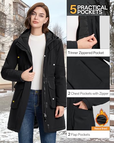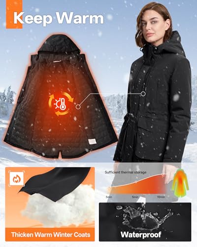 33,000ft Women’s Waterproof Insulated Coats with Hood Long Rain Jackets Thicken Warm Winter Coats Windproof Jacket for Travel