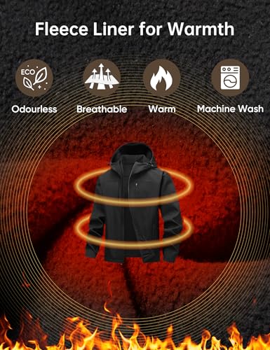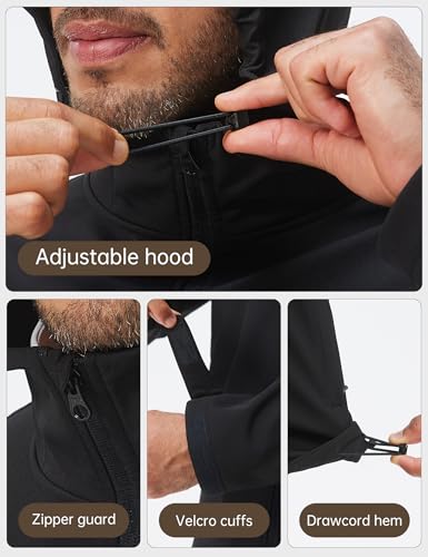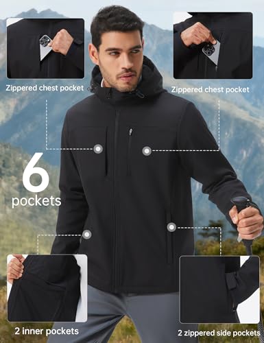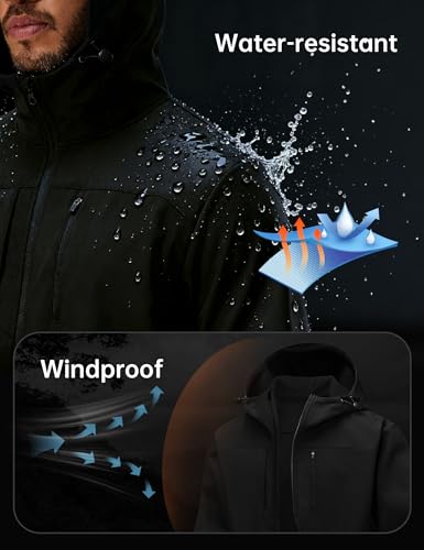 HOTSUIT Mens Softshell Jacket with Hood Water-Resistant Fleece Lined Jacket Men Lightweight Winter Coats for Hiking