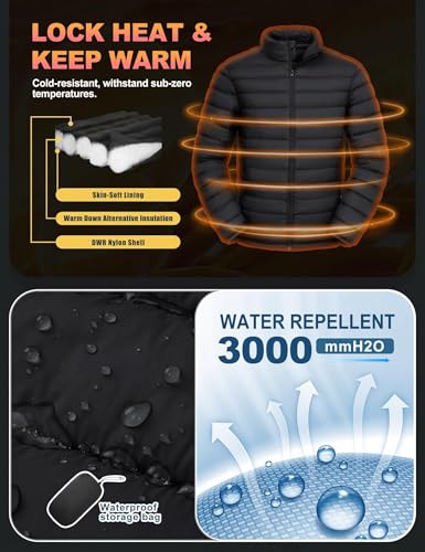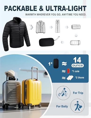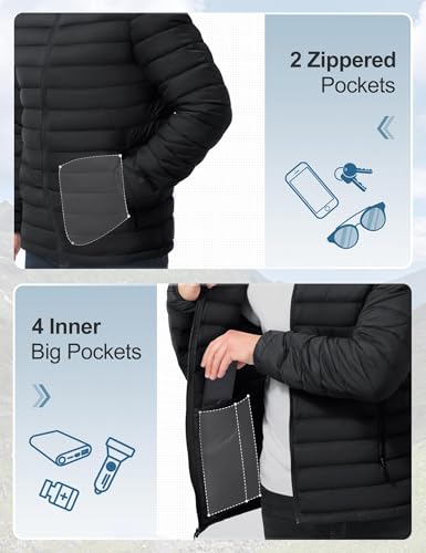 Men’s Lightweight Packable Puffer Jacket Insulated Warm Winter Jackets Puffy Coat for Ski Hiking Travel