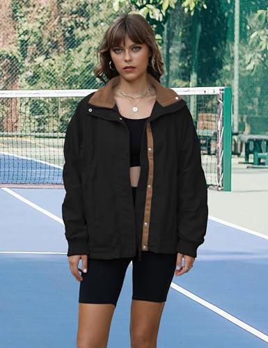 Womens Windproof Outdoor Jacket Fleece Lined Zip Up Lightweight Coat with pockets Fall Travel Casual Wear
