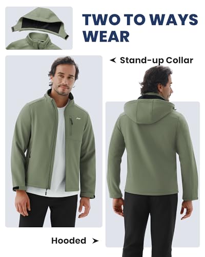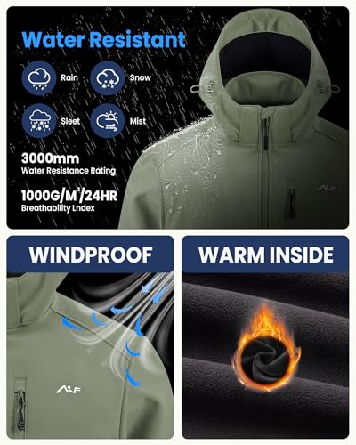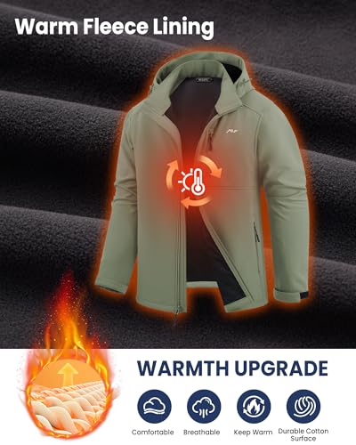 WULFUL Men’s Softshell Jacket Waterproof Lightweight Insulated Windbreaker Fleece Lined Rain Shell Jacket for Hiking Travel