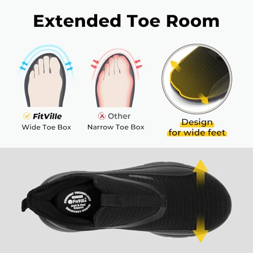 FitVille Men’s Extra Wide Slip on Walking Shoes with Arch Support Men Slip on Sneakers for Foot Pain Relief-Stepease V2