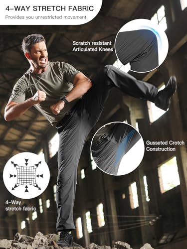 FLEXIBLE & COMFORT: The pants for men featured 4-way stretch fabric which has the characteristics of ultralight, breathe freely, quick-drying and elastic. The waterproof hiking pants keeps you dry in outdoor activities without any sense of restraint on your legs. Reinforced articulating knees are designed with 4 pleats and 3D tailoring for the ultimate comfortable and flexible