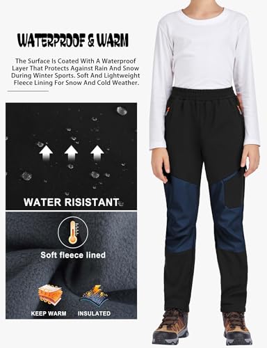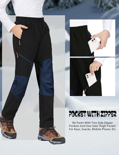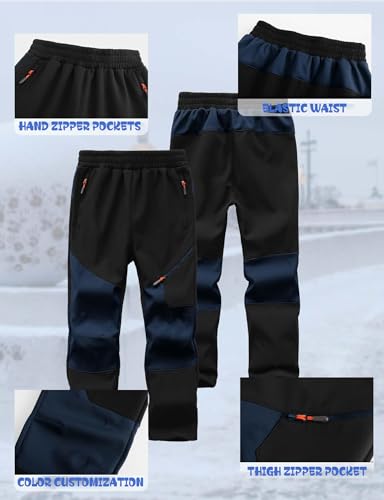 Kids Winter Pants Fleece Lined Waterproof Boys Ski Pants Thermal Outdoor Softshell with Zipper Pockets
