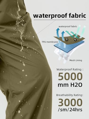Men’s Packable Rain Pants Waterproof Windproof Outdoor Rain Overpants for Hiking Fishing Daily Work