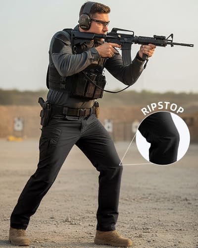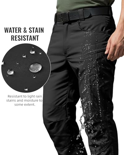 Men’s Stretch Tactical Pants Waterproof Ripstop Fabric Cargo Pants Lightweight Casual Hiking Outdoor Work Pants (No Belt)
