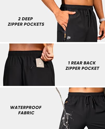Mens Sweatpants with Zipper Pockets, Workout Pants Joggers Athletic Lightweight Waterproof Rain for Gym Track Hiking