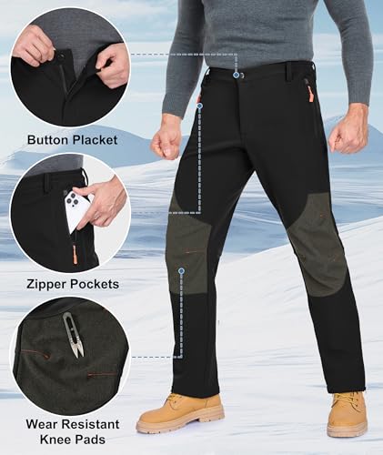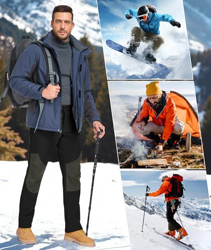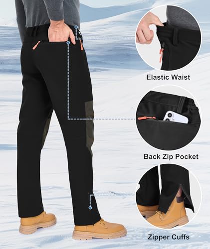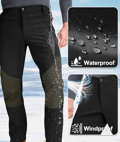 Mens Winter Snow Pants Waterproof Thermal Fleece Lined Hiking Pants with Zip Pockets