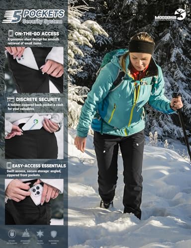 Moosehill Women’s Ski Snow Pants: Fleece Lined Waterproof Insulated Softshell for Winter Outdoor Hiking with 5 Pockets