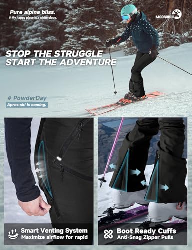 Moosehill Women’s Snow Ski Pants: Fleece lined Waterproof Insulated Softshell for Winter Hiking Snowboarding Outdoor