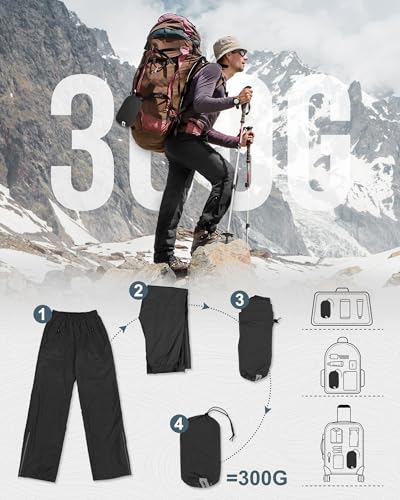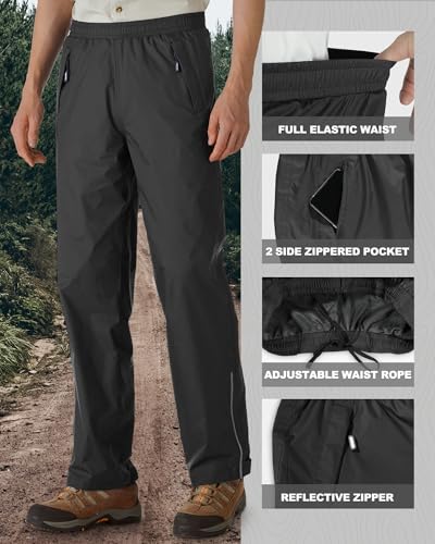 Outdoor Ventures Men’s Rain Pants Waterproof Rain Overall Pants Windproof Packable Rain Outdoor Pants for Hiking Fishig Golf