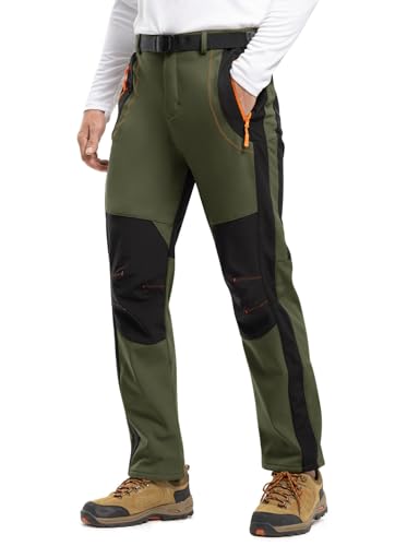 TBMPOY Men’s Snow Ski Hiking Pants Waterproof Winter Fleece Lined Pants Camping Skiing Ice Fishing Pants with Belt