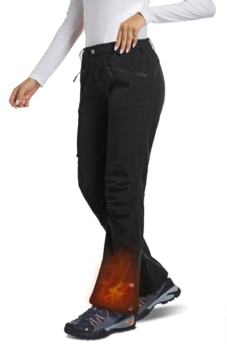 Women’s Snow Ski Pants Waterproof Windproof Fleece Lined Softshell Insulated Winter Snowboarding Hiking Outdoor Flare Pants