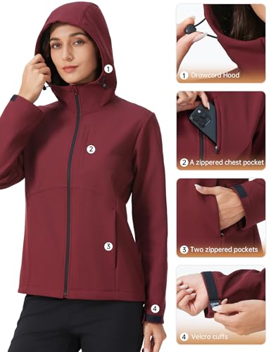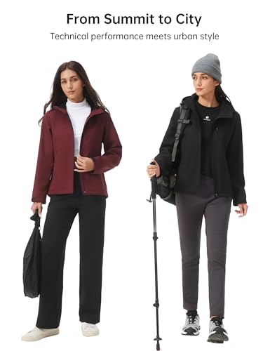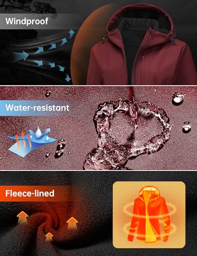 HOTSUIT Women’s Softshell Fleece Lined Warm Windbreaker Jacket Light Hooded Water Resistant Rain Coat for Travel Daily