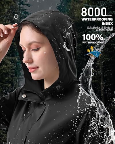 iCreek Women’s Long Rain Jacket Waterproof Lightweight Packable Raincoat Hood Windbreaker for Outdoor Hiking, Cycling, Travel