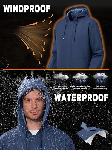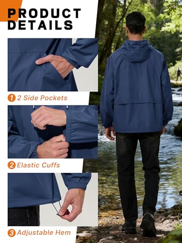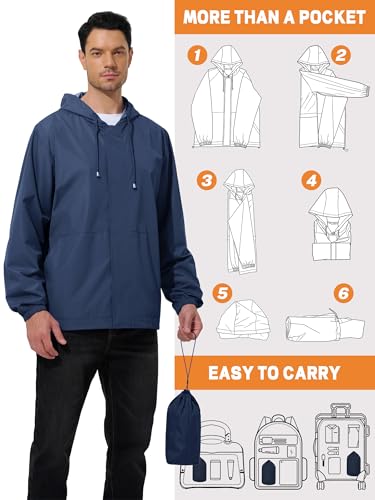 Men’s Rain Jacket Waterproof Windbreaker Raincoat Cycling Running Hiking Golf Travel Gear Hood Lightweight Packable