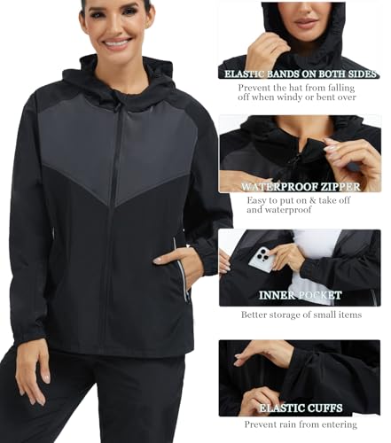 NINGMI Women’s Raincoats Rain Jacket Lightweight Waterproof Windproof Hood with Pocket for Outdoor Hiking Travel Windbreaker