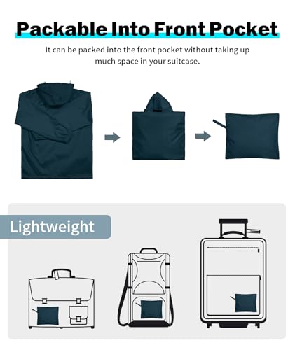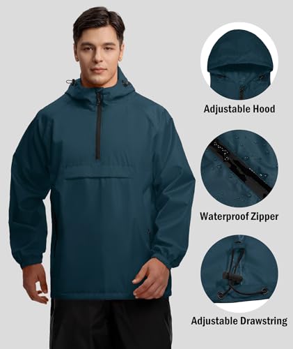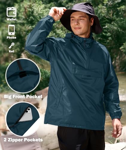 SWISSWELL Men’s Rain Jacket Waterproof Lightweight Packable Pullover Windbreaker with Hood for Travel Hiking Golf