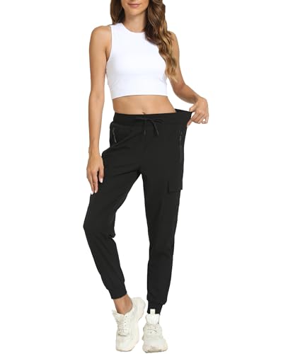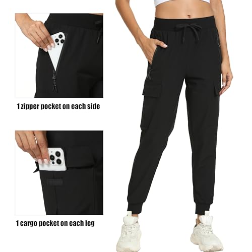 Women’s Joggers with Pockets Lightweight – Water Resistant Cargo Athletic Pants for Hiking Running Camping Travel