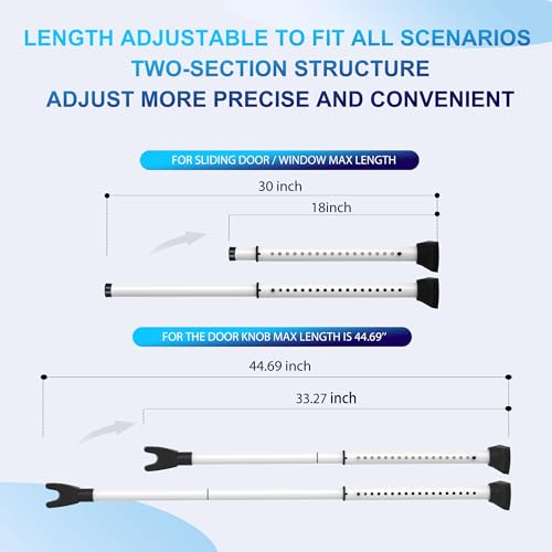 [Adjustable 2-in-1 door and sliding door safety bar] The length of the door security bar can be adjusted from 18 inches to 44 inches, ensuring perfect fit to various door widths and providing excellent safety. The entire product weighs only 2.2 pounds, making it easy to carry when traveling or storing at home.