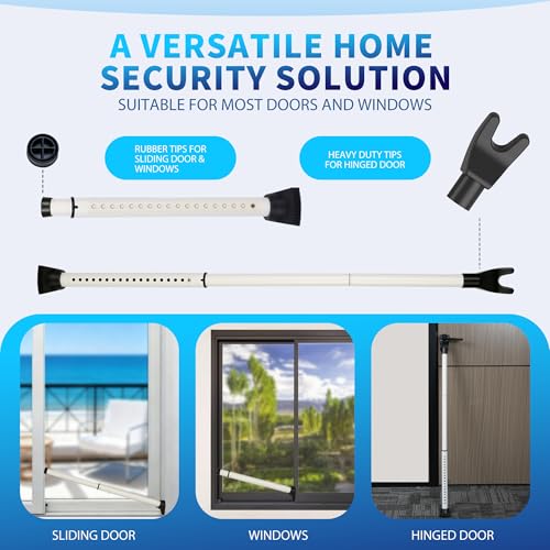 2025 Upgraded 2-in-1 Door Security Bar,Door Stoppers,Adjustable Heavy Duty Stoppers Jammer for Apartment,Home, Hotel Room,Travel(1 Pack,White)