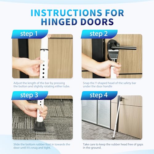 [ Easy to use ] Our door stoppers is very simple to use, with only a secondary structure that allows you to quickly strengthen your defense. However, when using it, care must be taken to ensure that there is no gap between the rubber feet and the ground.