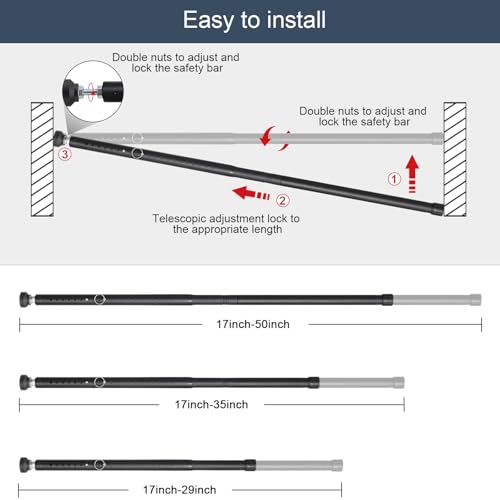 A Variety of Adjustable: The patio door security bar with a total length of 50inch can be freely stretched and adjusted between 17.7-50.5inch to perfectly adapt to various lengths.