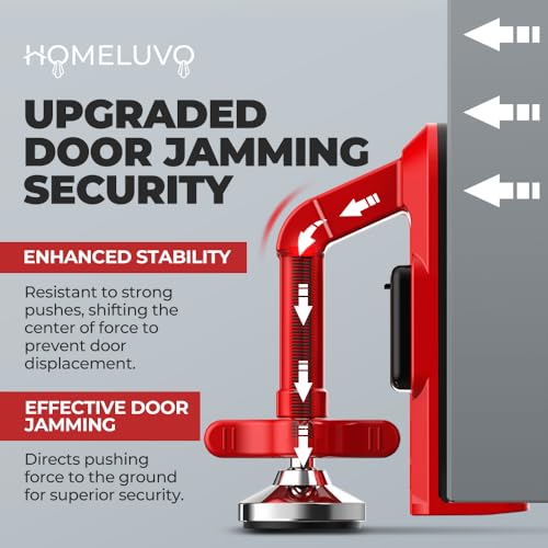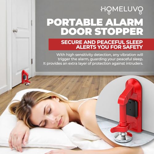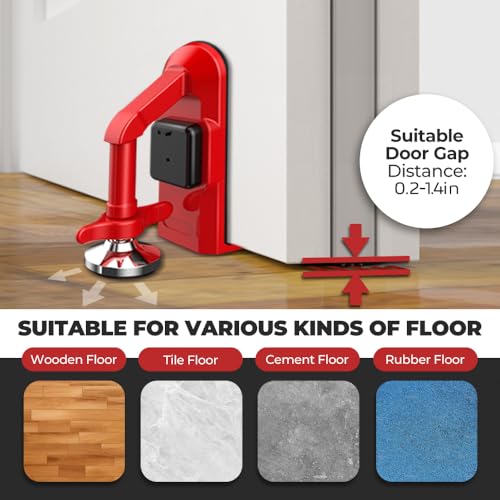 Portable Alarm Door Stopper – Strong Security Anti Theft Smart Lock for Travel Safety – Front Door Jammer Device for Apartment Hotel Home – No Drill Bottom Door Floor Blocker Brace with Siren
