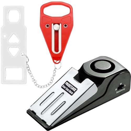 Portable Door Lock + Door Stop Alarm Set – Travel Safety Kit for Hotel Rooms, Home, Dorms & Apartments – PocketLock (Red, Lock + Alarm)