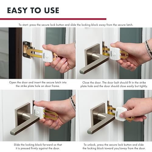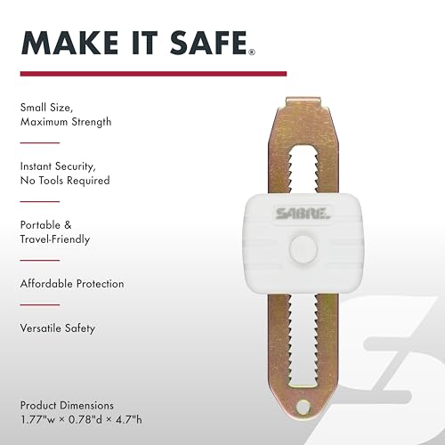 SABRE Compact Travel Door Lock, Portable Security Lock for Travel, Hotels, & Rentals, Withstands 650 lbs of Force, Installs in Seconds, No Tools Required, Lightweight & Small for Easy Carry