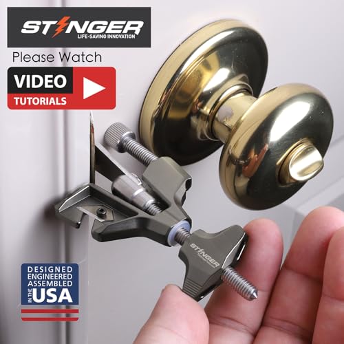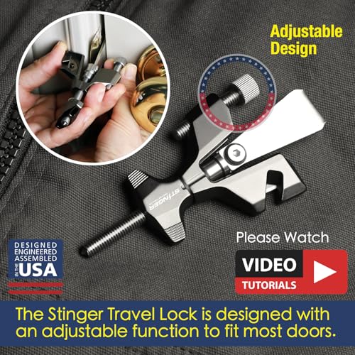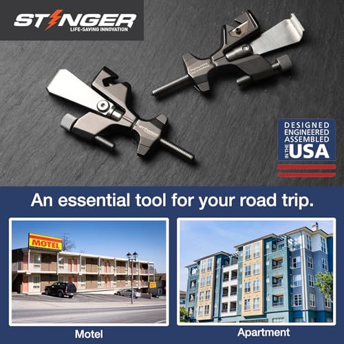 Stinger Portable Door Lock for Travel, Travel Door Lock with Seat Belt Cutter and Glass Breaker | Home and Hotel Room Security Device