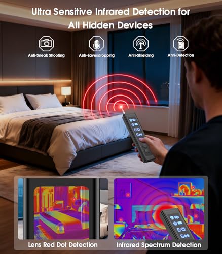Pro Dual Sensor Detection Tool:Equipped with a patented 360° full-range real-time scanning system, this professional camera detector delivers 20% wider coverage than comparable brands and accurately identifies all types of privacy threats.It integrates high-precision RF scanning and ultra-fast magnetic detection core technologies, enabling full-room coverage scanning with simple operations and greatly reducing the difficulty of manual checks.It combines three key advantages in one: extended detection range, faster scanning efficiency and superior identification performance.